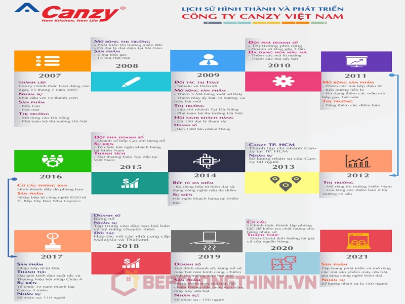 Với 15 năm xây dựng và phát triển thị trường tại Việt Nam, cho đến nay thương hiệu Canzy đã và đang là sự lựa chọn hàng đầu trong lĩnh vực cung cấp thiết bị nhà bếp như bếp từ, máy hút mùi, máy rửa bát, đồ gia dụng.v.v….